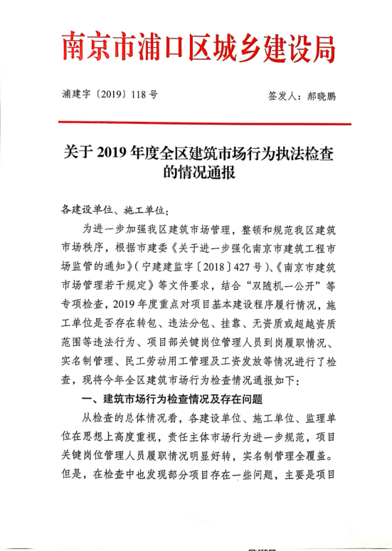近日,浦口區(qū)城鄉(xiāng)建設(shè)局對(duì)2019年度全區(qū)建筑市場(chǎng)行為執(zhí)法檢查的情況進(jìn)行通報(bào),浦口區(qū)平安工地創(chuàng)建領(lǐng)導(dǎo)小組對(duì)2019年度“平安工地”創(chuàng)建先進(jìn)項(xiàng)目和先進(jìn)個(gè)人表彰通報(bào)。興宇集團(tuán)承建的雨發(fā)大廈項(xiàng)目,2019年度在安全生產(chǎn)、文明施工、實(shí)名制管理及市場(chǎng)行為管理方面成績(jī)突出,被區(qū)級(jí)相關(guān)部門通報(bào)表揚(yáng)。
